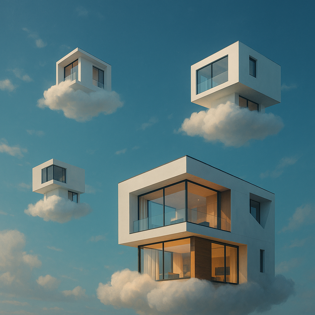 そんな提案が出ると、何軒もの家がふわりと空へ舞い上がり、