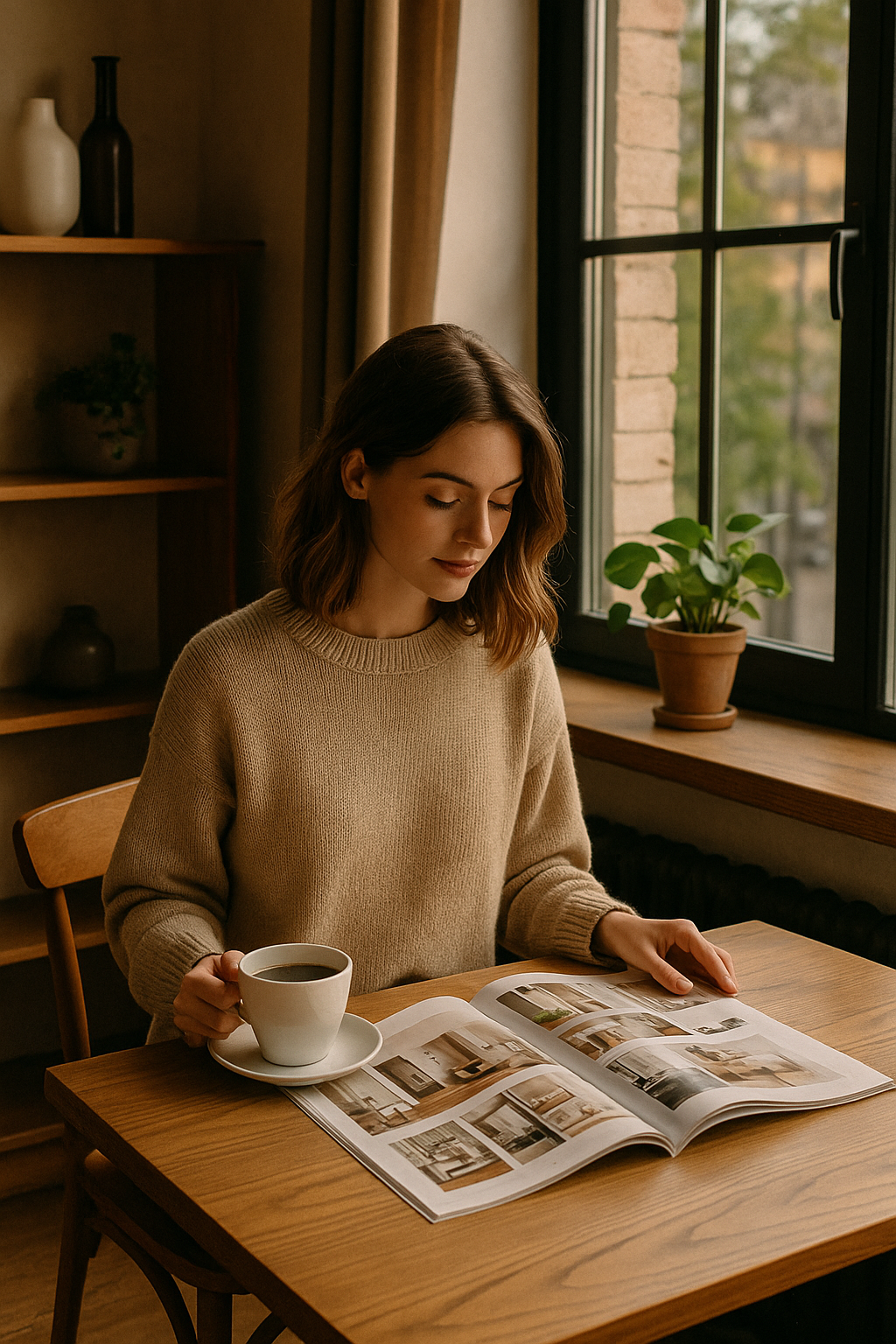 香り高いコーヒーを片手にインテリア雑誌をめくる姿は、