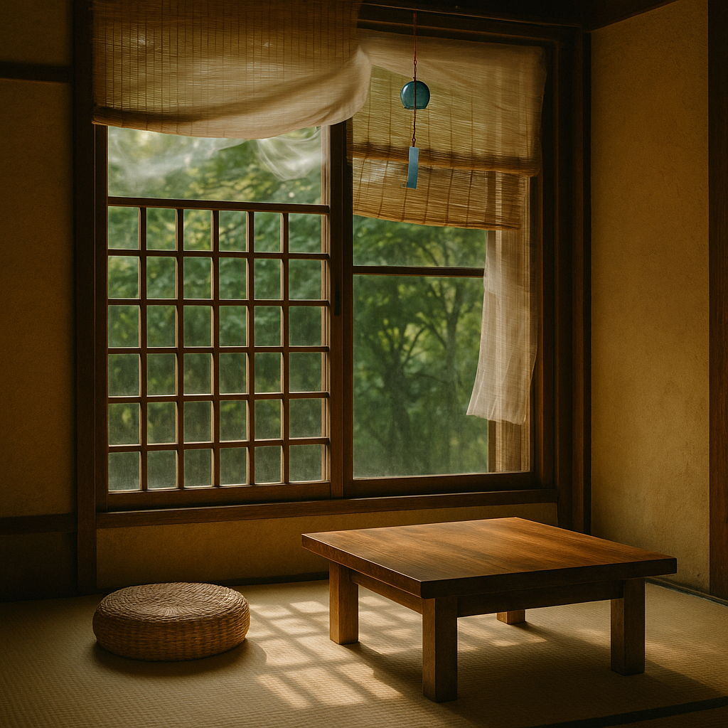 夏には、格子窓や簾越しに差し込む光とともに、そよそよと通り抜ける風が部屋の奥まで涼を届けてくれました。