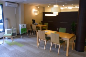 クロス、照明、床のタイルカーペットが仕上がるとイメージがガラッと変わります。